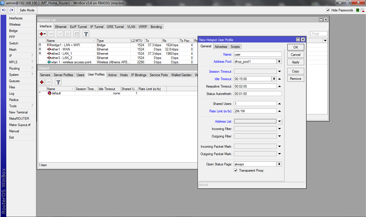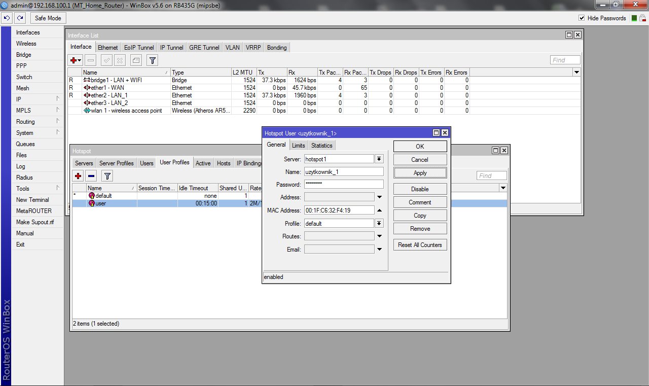 Hotspota konfigurujemy na uprzednio przygotowanym routerze lub innym punkcie dostępowym. Posłuży nam do podzielenia łącza przypisując każdemu użytkownikowi jego indywidualną przepustowość. Dodatkowym plusem jest autoryzacja użytkownika na poziomie logowania + wentualnym sprawdzaniu MAC adresu.